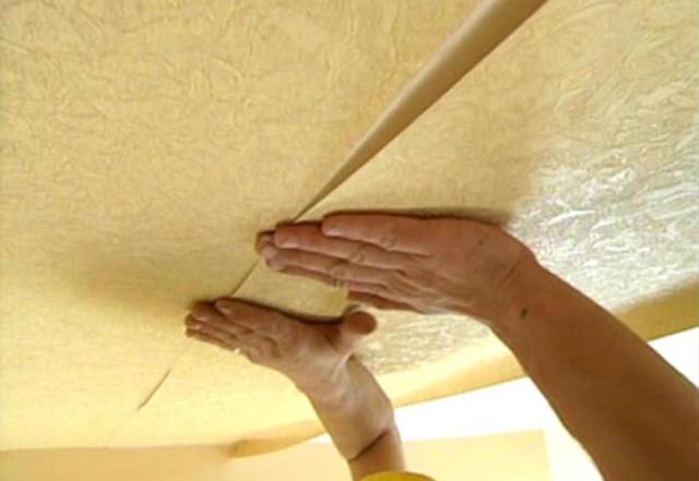 Il existe des papiers peints liquides qui diffèrent des papiers peints traditionnels par leur structure et leur méthode d'application. Ils sont un mélange sec de papier et de composants décoratifs, qui doivent être mélangés avec de l'eau et appliqués au plafond. Ce travail se fait à la spatule et à la truelle. L'avantage de ce revêtement est la facilité de restauration des zones endommagées - humidifiez le fragment endommagé avec de l'eau, retirez-le et appliquez-en un nouveau.