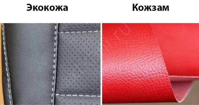 Sous le nom général, le cuir artificiel combine plusieurs types de matériaux polymères qui imitent le cuir naturel. Ils sont à base de textiles ou de non-tissés. Des mélanges sont ajoutés à la composition polymère pour augmenter la résistance au gel et la résistance. Au stade final, la surface est poncée, texturée et peinte. Le matériau de rembourrage s'avère résistant à l'usure, élastique et résistant aux intempéries. Il conserve l'intensité de la couleur pendant longtemps. Parmi les inconvénients: l'allumage à partir d'un feu ouvert, les produits bon marché ont une odeur chimique.