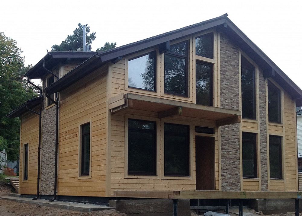 Le coût de la maison et la rapidité de sa construction dépendent du choix du bois. Le bois lamellé-collé coûteux ne nécessite pas une longue durée de vie, vous permet de finir et d'emménager immédiatement.