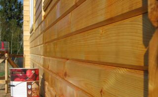 Parmi les peintures et vernis, les critères énumérés sont remplis : compositions acryliques, polyuréthanes, huiles et alkydes. Peindre une maison depuis un bar à l'extérieur vous permet de changer la couleur des murs, de masquer les imperfections mineures de la surface.