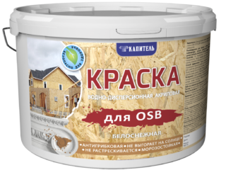 Les apprêts-peintures de façade pour OSB combinent les propriétés d'une couche de finition, d'un apprêt et d'une bioprotection. Ils ont la bonne adhérence et un bon pouvoir couvrant. Sur la surface texturée des dalles, elles sont appliquées en deux couches, dans l'une les rayures sont placées verticalement et la seconde horizontalement. Le travail se fait avec un rouleau en fourrure ou en mousse, préalablement trempé dans l'eau. Avant utilisation, la peinture-apprêt est agitée jusqu'à consistance lisse. Après séchage, un revêtement élastique, ininflammable et perméable à la vapeur est obtenu avec une durée de vie allant jusqu'à 10 ans. La texture OSB n'est pas visible à travers elle. La composition est vendue en blanc, mais il existe des milliers d'options de teinte.