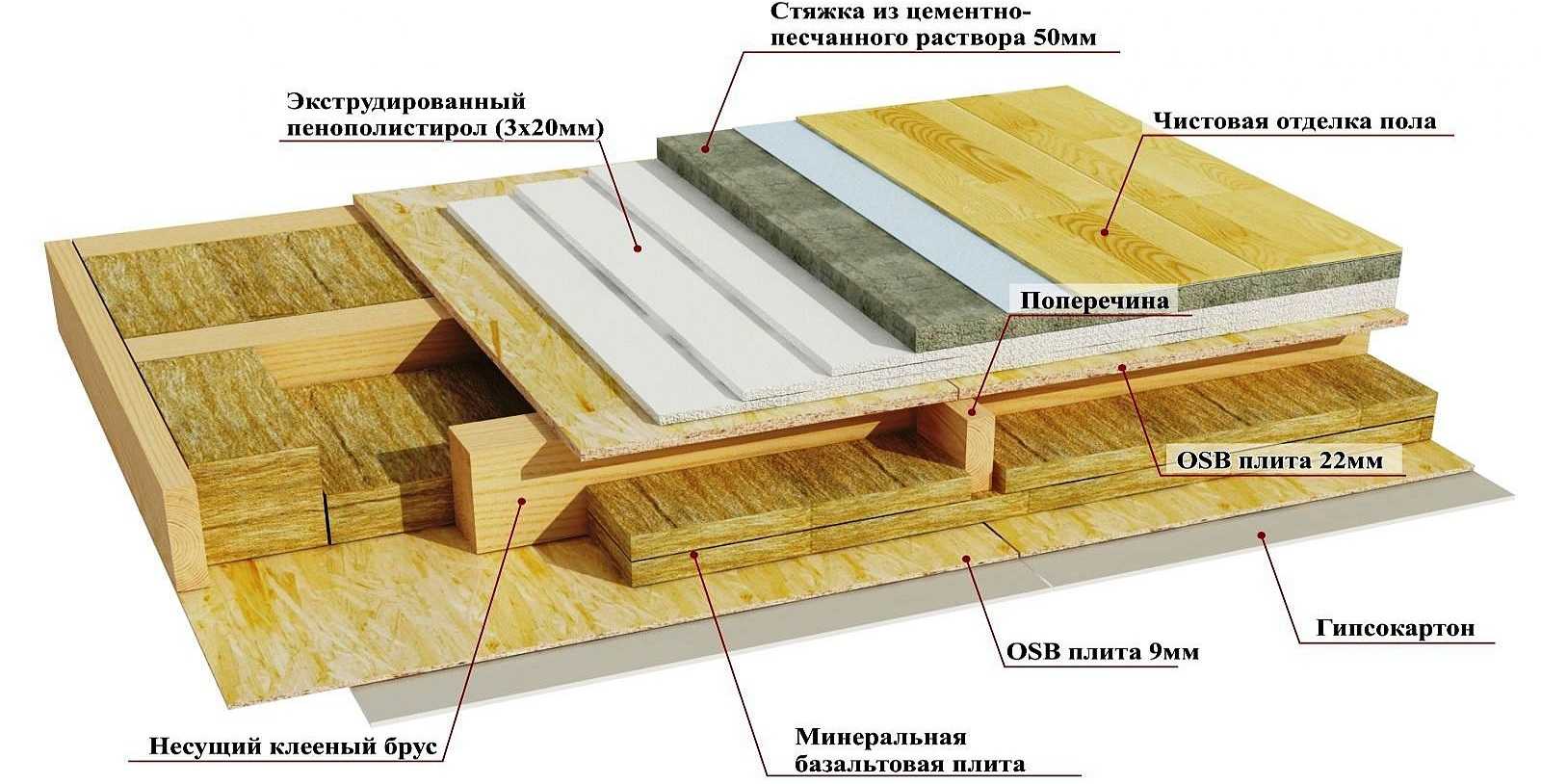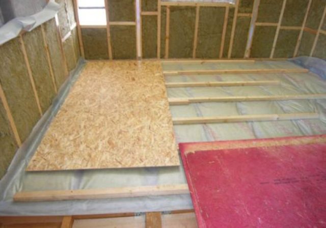 Les planches peuvent être installées directement après l'installation de la sous-base. Cependant, si un plancher de sous-sol est prévu dans la structure, il sera nécessaire d'ériger une structure de double plancher avec une isolation supplémentaire.