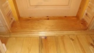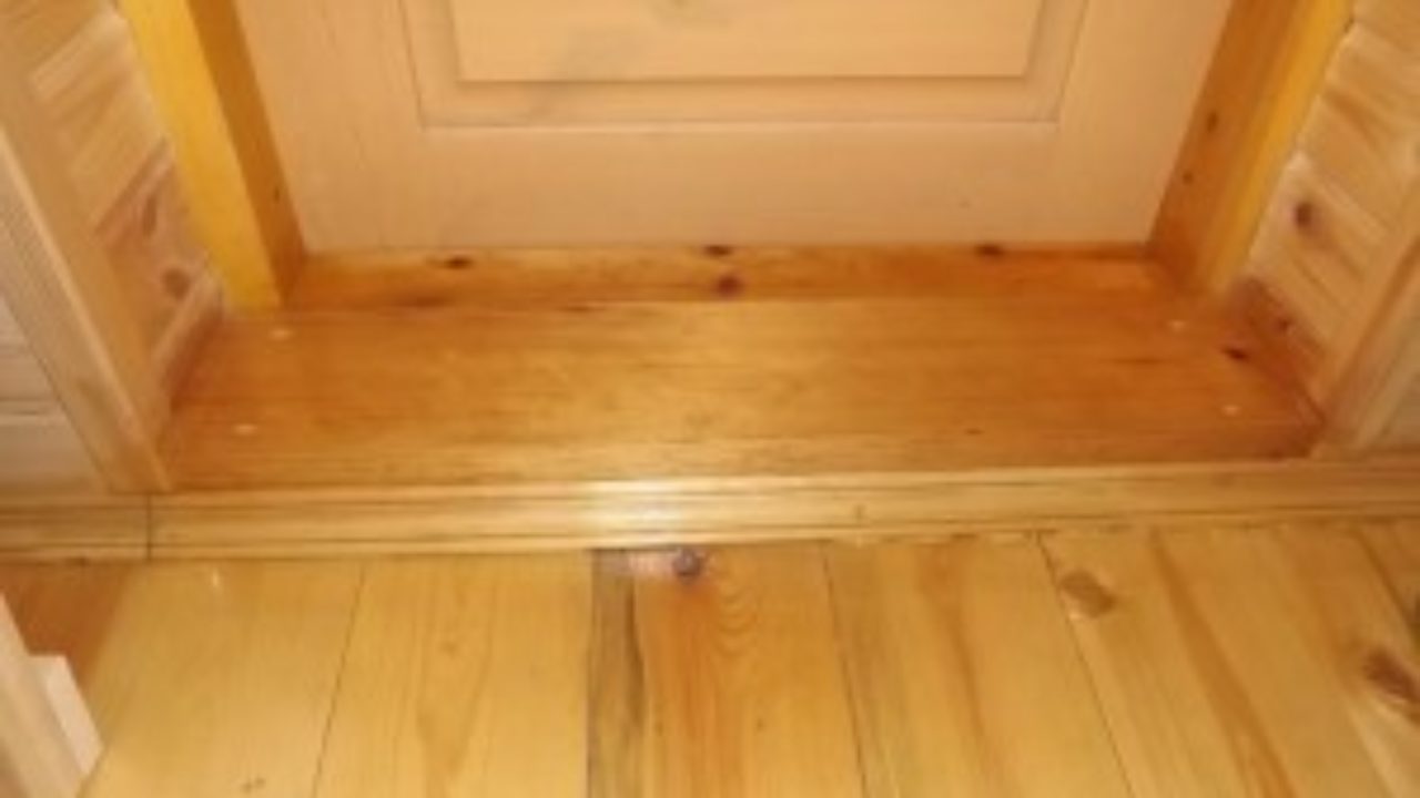 Une planche pour un seuil en bois doit avoir une longueur dépassant légèrement le jeu formé par les crémaillères du cadre. Dans les parties inférieures de ce dernier, pour la fiabilité de la fixation, des coins sont coupés, dont la hauteur doit être adaptée à la largeur de la structure. La surface du sol est nettoyée avec un aspirateur, puis les planches sont insérées dans les évidements préparés, sciées en fonction de la hauteur du seuil. La fixation se fait avec des clous. Le produit peut être verni.
