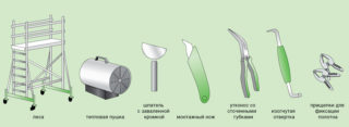 Pour retirer le plafond tendu de vos propres mains, le réparer et le remettre en place, vous avez besoin des outils suivants: