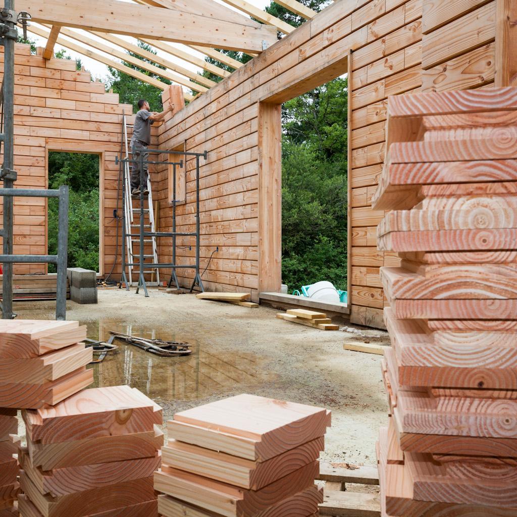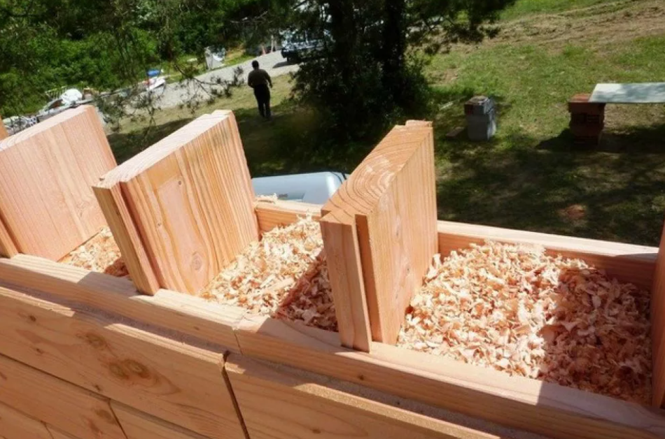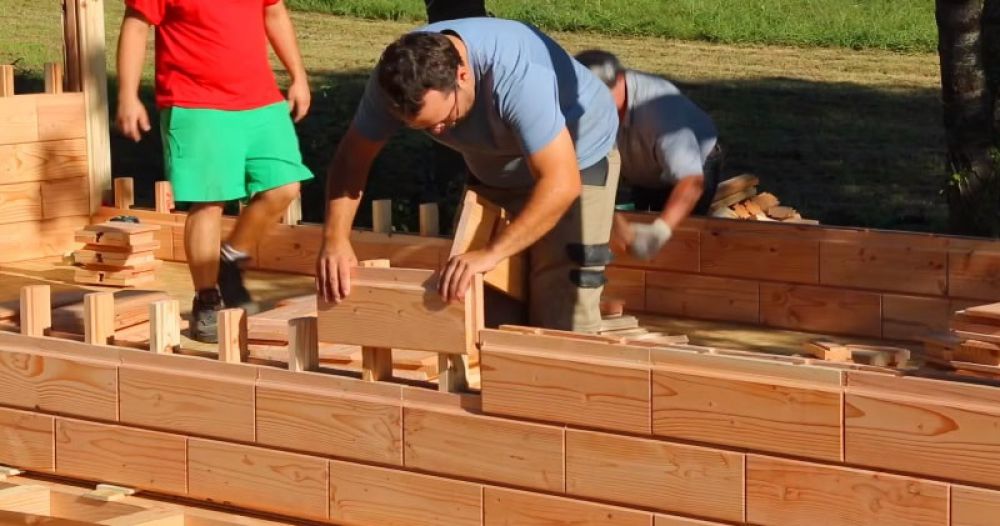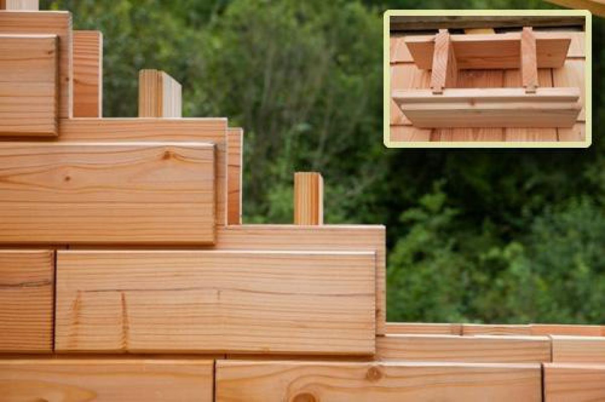 Des blocs de bois sous forme de briques avec des rainures sont utilisés pour la construction structures dans les bâtiments résidentiels et publics: