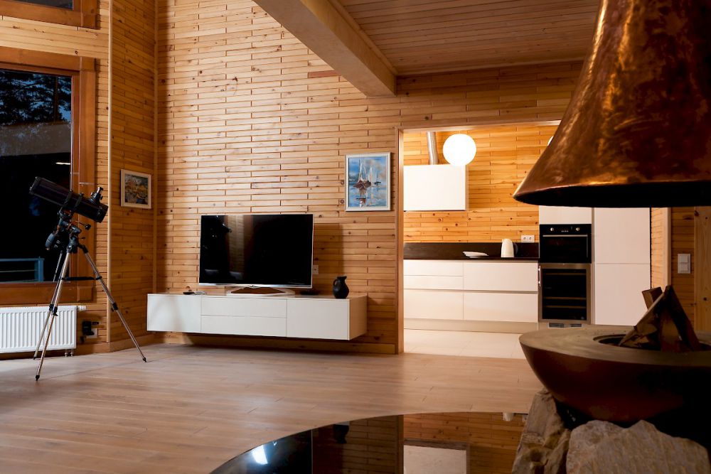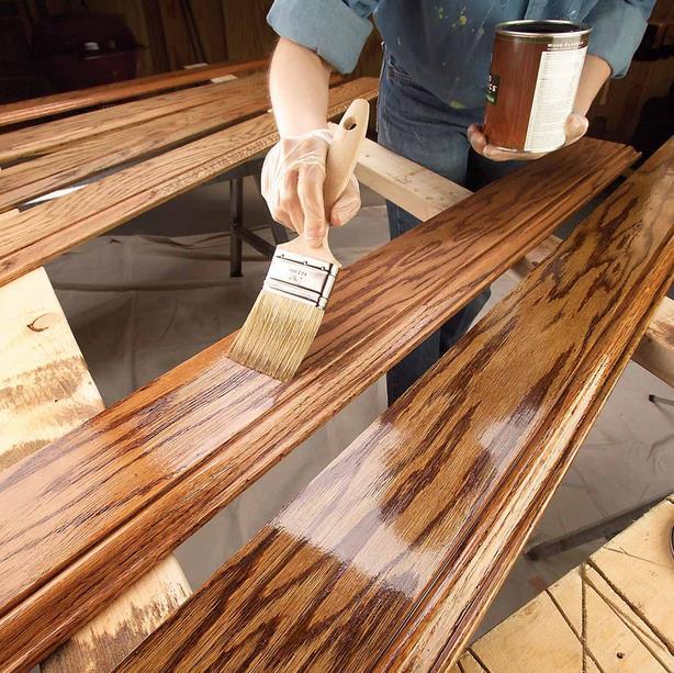 Les produits hydrosolubles n'ont pas d'odeur contrairement aux imprégnations alkydes. Les peintures et vernis protègent en outre les surfaces en bois des parasites, des insectes. Les produits colorés soulignent la texture boisée, ennoblissent le mur. Finalement le pin teinté ressemble à du frêne de montagne ou à de l'acajou coûteux... Un matériau de couleur claire peut recevoir une teinte foncée et vice versa.