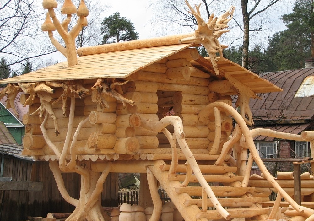 Il est préférable de construire une habitation en bois dans un espace ouvert. Là, vous ne pouvez pas être limité par les dimensions. La matière première elle-même a une belle apparence, est durable, presque aucune finition n'est requise, à l'exception de l'application d'un apprêt, d'une peinture ou d'un vernis.