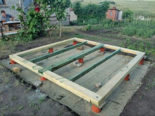 - Lorsque la fondation sèche et gagne en résistance, le cadre est installé dessus et solidement fixé.