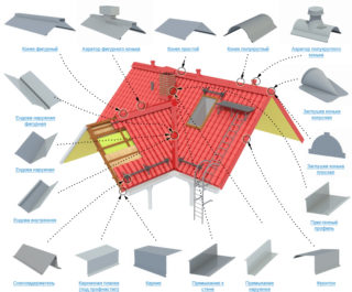 Selon les caractéristiques de conception de la toiture, d'autres composants peuvent également être utilisés : joints et joints, bandes d'extrémité et internes, manchons et capuchons. De ce fait, une protection plus efficace du bâtiment contre les facteurs externes est assurée, la réalisation de l'intégrité, de la solidité et de l'étanchéité.