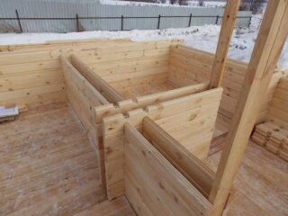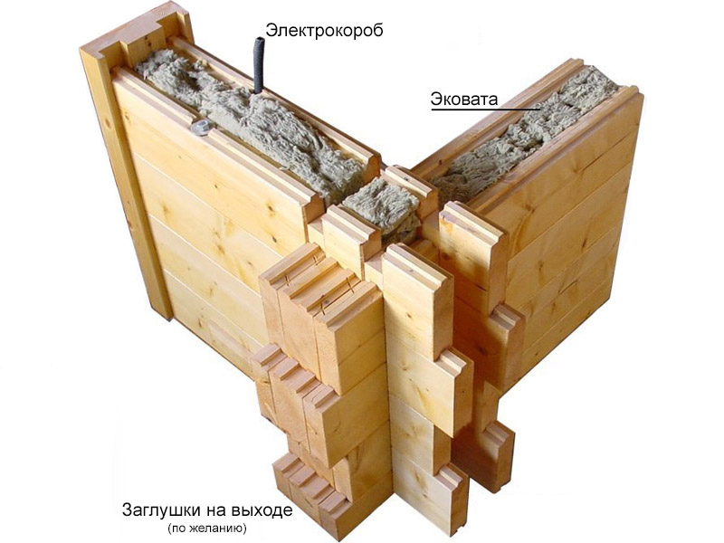Le niveau inférieur des murs est installé à partir du bois sur les lattes. Les fissures détectées sont scellées avec de la mousse de polyuréthane. Le processus ultérieur de construction de murs est similaire à l'assemblage d'un constructeur.