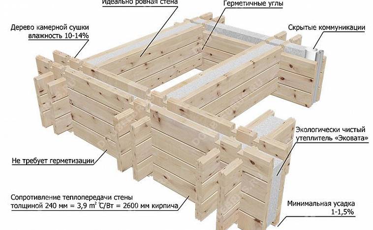 Les maisons en bois double attirent par leur apparence - le matériau a une surface plane et une texture attrayante, ne nécessite pas de revêtement ultérieur. En raison du faible poids lors de la construction, vous n'avez pas besoin de dépenser de l'argent pour une fondation massive. D'autres avantages de tels bâtiments comprennent: