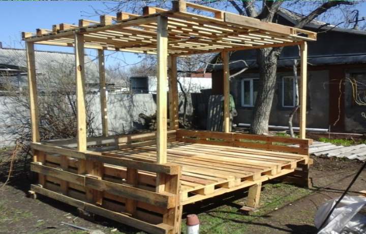 Parmi les matériaux dont vous avez besoin pour acheter une barre, un apprêt et du matériel (clous, vis, coins). Avant utilisation, les palettes sont nettoyées de la saleté, séchées, traitées avec un agent ignifuge, hydrophobe et antiseptique.