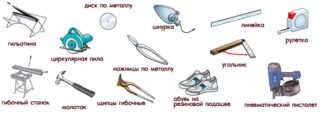 - Donnez aux flans la forme désirée. Si vous achetez de l'acier laminé, coupez-le à la longueur. Préparez des éléments supplémentaires pour connecter le toit avec des tuyaux et des lucarnes.