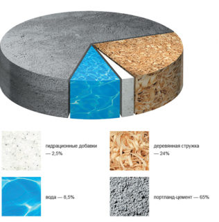 Tous les copeaux sont entourés d'une pierre de ciment, la pyrolyse ne commence donc qu'à + 500 ° C et plus, alors que cette température doit être maintenue pendant une demi-heure ou plus. Si la chaleur de l'intensité spécifiée est arrêtée, l'incendie ne se produit pas. Lorsqu'elles sont chauffées au-dessus de + 700°C, les copeaux s'enflamment dans toute la masse du panneau. A cette température, le ciment s'effondre et le matériau perd 100 % de sa résistance ; la décoration de façade en panneaux de particules de bois lié au ciment ne peut pas être réparée.