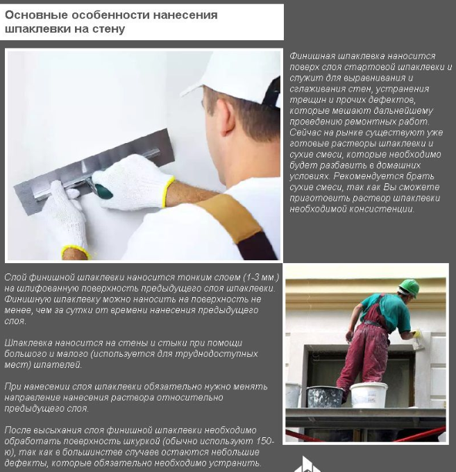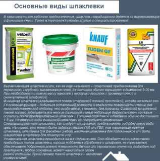 Le mastic finement dispersé vous permet de créer une couche fine et lisse pour la finition décorative. Le mélange est facile à appliquer, a une bonne adhérence, ne craque pas après séchage. La solution est appliquée en une couche de 2-4 mm. Dans le cadre du mastic de finition avant, il s'agit généralement de ciment blanc ou de gypse, il est donc blanc.