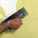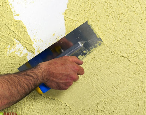 - Jeter du plâtre sur le mur. Cela se fait de bas en haut dans une bande jusqu'à un mètre de haut.