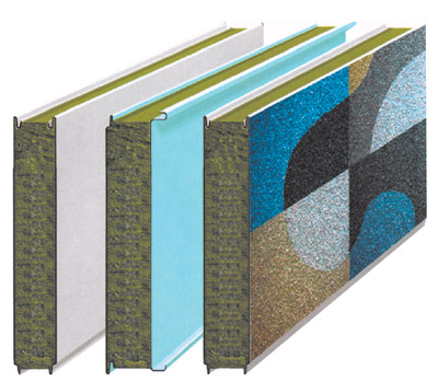 - Panneaux sandwich. Des produits uniques constitués d'une couche d'isolation thermique, d'un revêtement décoratif extérieur et d'un support protecteur. Ils se caractérisent par une résistance et une durabilité suffisantes. En règle générale, la mousse est utilisée comme isolant.