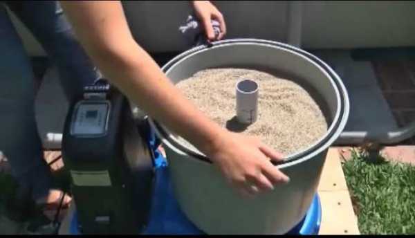 Remplissez de sable, vissez fermement le couvercle. L'étape suivante consiste à laver à contre-courant le purificateur dans un étang rempli d'eau. Ensuite, incluez une chasse d'eau légère. L'appareil passe en mode filtration pompe arrêtée, puis la pression est appliquée.