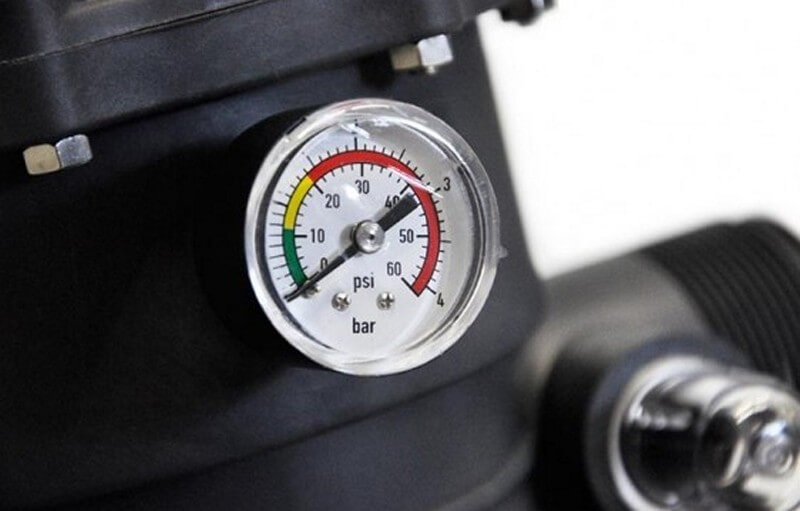 Un filtre colmaté sera signalé par un manomètre. Le sable bouché réduit le débit d'eau, mais la tête reste la même. Par conséquent, le manomètre indiquera une augmentation de la pression de fonctionnement. Il est nécessaire d'activer le mode chasse d'eau pour retarder le remplacement du sable.