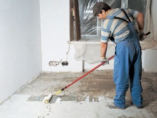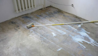 Avant d'appliquer l'apprêt sur la surface en béton, il est nécessaire de retirer tous les meubles et appareils électroménagers de la pièce. Le revêtement de sol est retiré.