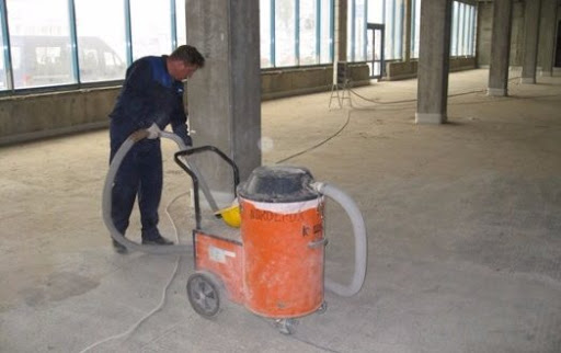 Malgré le fait que la plupart des mortiers retiennent la poussière, il est préférable de nettoyer la surface du béton avec un aspirateur de chantier. Les défauts doivent être comblés avec du mortier de ciment.