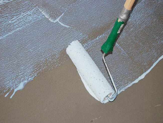 Les travaux commencent de l'autre côté du sol, loin de l'entrée. La composition est appliquée dans des zones pouvant être traitées, en provenance d'un parking.Les mouvements du pinceau ou du rouleau sont dirigés d'abord dans un sens, puis dans l'autre sens, de sorte que la composition remplit toutes les rainures de la surface.