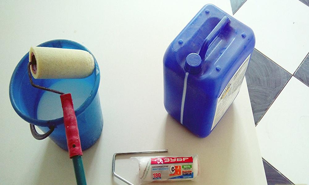 Observer les précautions de sécurité lors de l'amorçage du plafond. Utiliser un équipement de protection individuelle : couvre-chef, respirateur ou bandage de gaze, gants. Pour le travail, préparez des rouleaux, des brosses, de l'eau et un récipient.