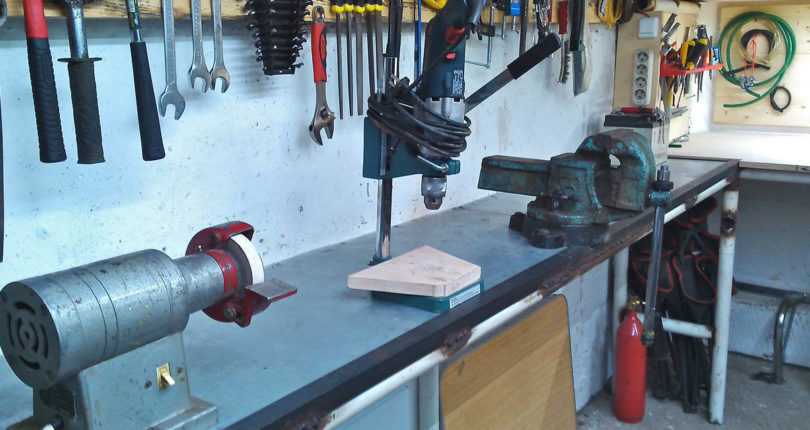 Beaucoup de travail est effectué dans le garage, par conséquent, des fixations sont installées sur la surface pour la fixation lors de la coupe, du pliage des pièces et du filetage. Le métal et le bois sont polis sur la table, rivetés, polis, gravés et autres œuvres.