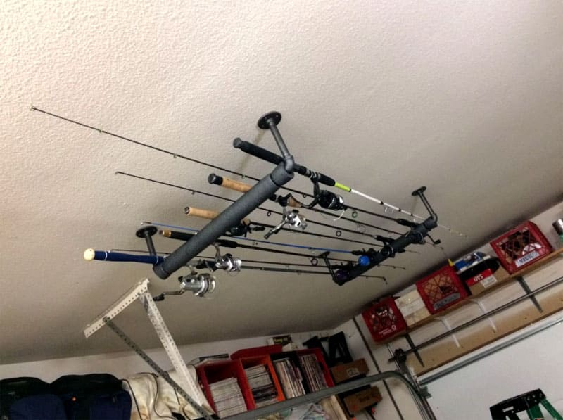 Le matériel est stocké dans des organisateurs spéciaux. Vous pouvez faire ressortir une tige avec une grille en acier. Il est fixé au plafond afin de ne pas gêner les travaux de réparation.