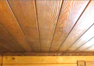 - Le chevauchement est gainé de clins ou de planches bordées de tilleul, d'aulne, de tremble. Les planches sont posées perpendiculairement à la direction des bûches de plafond.