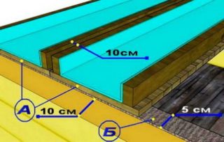 Au niveau du chevauchement, un cadre puissant est construit à partir d'une barre, des panneaux sont installés dessus, se joignant étroitement les uns aux autres. Les panneaux sont fixés avec des planches, les espaces entre eux sont remplis de jute et des planches ordinaires sont posées sur le dessus, formant le sol du grenier.