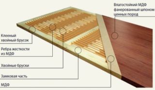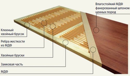Les planches longitudinales sont reliées par plusieurs larges traverses. Une partie de la toile peut être remplie de verre, de plastique et d'autres matériaux. Toute la surface est finie avec un matériau de finition, il n'y a pas de renflements ni de rainures.