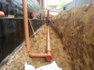 Lors du choix de la dernière méthode, il ne faut pas oublier que la profondeur du fossé doit être de 0,5 m plus profonde que celle de la fondation et que la largeur doit être d'environ 120 cm.Sur quatre côtés, des coudes sont faits d'environ 5 m de long, aux extrémités desquelles des rainures sont créées. Des géotextiles sont posés le long du fond du fossé et un tuyau ondulé de drainage est monté dessus. Les puits sont installés après 7 m. Après l'installation du tuyau, le fossé est recouvert de gravier et 0,1 m avant la base de la maison - de sable et au-dessus de gravier grossier. Ce dernier est ensuite coulé avec du mélange de béton.