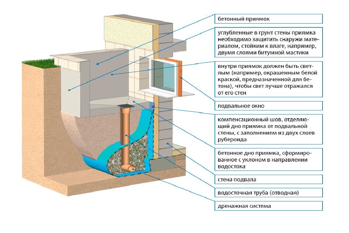 C'est facile de le faire vous-même. Une fosse cubique d'environ 1 mètre cube de volume est créée au milieu de la pièce. Un approfondissement est réalisé en son centre et un seau en inox y est placé. Le sol autour de lui est tassé. La structure est posée avec des briques, une couche de mortier de ciment de 2 cm est faite sur le dessus et un treillis de tiges de fer est placé. La distance entre ces derniers doit être telle que l'eau puisse être pompée par la pompe. Des tranchées sont creusées dans la fosse et des tuiles sont posées pour former des drains.