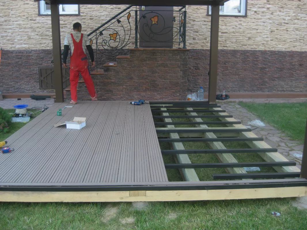 Le bois peut être utilisé en combinaison avec d'autres matériaux. Par exemple, vous pouvez faire un plancher en bois dans un belvédère en métal. Cette option mettra l'accent sur le caractère unique du style, facilitera visuellement la conception.