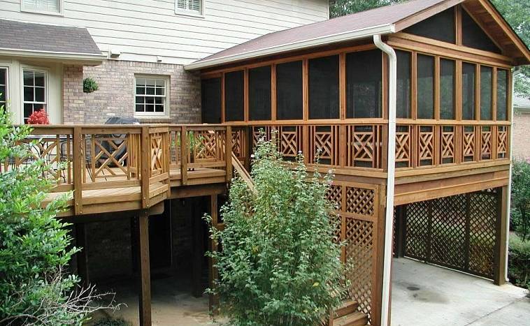 Les plates-formes en bois sont un type traditionnel de véranda. Ils utilisent des roches qui résistent fermement aux conditions atmosphériques négatives. Le bois doit être solide et avoir de bonnes performances en compression, flexion et abrasion.