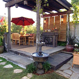 Avant le dispositif de la terrasse, la localisation du site et son relief sont analysés. Si la maison est située sur une pente, une élévation organisée à distance est réalisée pour visualiser la forêt, la côte de la mer ou un autre paysage. Les piliers sont utilisés comme fondation de support, qui atteignent une hauteur allant jusqu'à trois mètres.