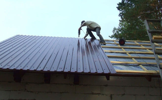 Lors de la fixation de la tôle profilée au toit, vous devez attacher l'assurance sur vous-même afin de ne pas tomber de hauteur. Il est nécessaire de travailler avec des vêtements de protection et des gants.