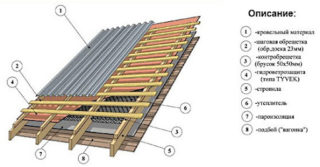 Le toit se compose de plusieurs couches qui doivent être installées dans un ordre strict. Cela garantit une protection fiable et une isolation thermique de toute la maison. Le nombre de couches dépend des conditions d'exploitation et de la destination du bâtiment. S'il est destiné à la résidence permanente de personnes, l'arrangement standard de la tourte de toiture est le suivant :