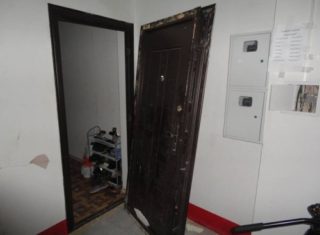 - Toutes les poignées, serrures et judas sont retirés.