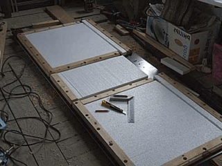 L'isolation est posée sur le vantail de la porte, qui ne doit pas dépasser le rouleau. Plus loin: