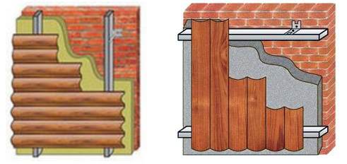 - Ils montent un lattage en bois ou un profilé en métal galvanisé. Sur les murs égaux, les bûches sont fixées directement à la surface, avec de grandes différences, des supports sont utilisés.