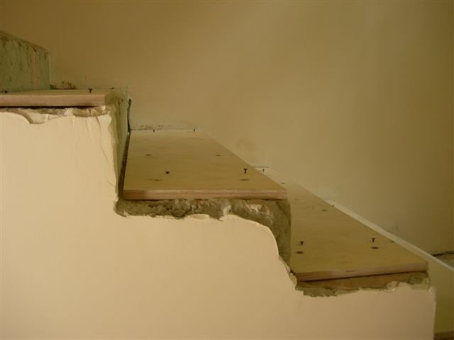 Le revêtement avec un revêtement préliminaire avec du contreplaqué est une méthode longue et coûteuse, mais elle est considérée comme la meilleure, car elle augmente considérablement la qualité et la durée de vie des escaliers.