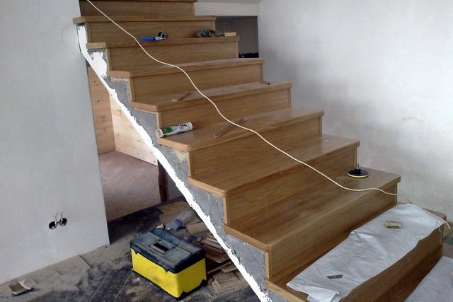 Décorer un escalier en béton avec du bois durera longtemps si vous suivez la technologie et n'économisez pas sur les matériaux.