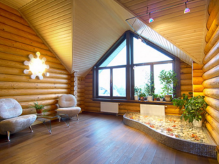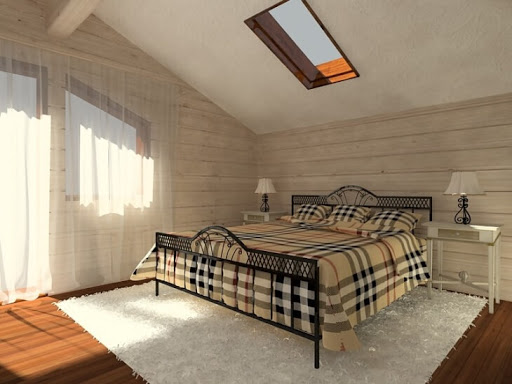 Le bois naturel crée un confort et une ambiance rustique romantique. Le revêtement pratique appartient aux types élastiques de revêtement de grenier et compense les vibrations imperceptibles des murs du plancher du grenier sous les charges de vent et de température.