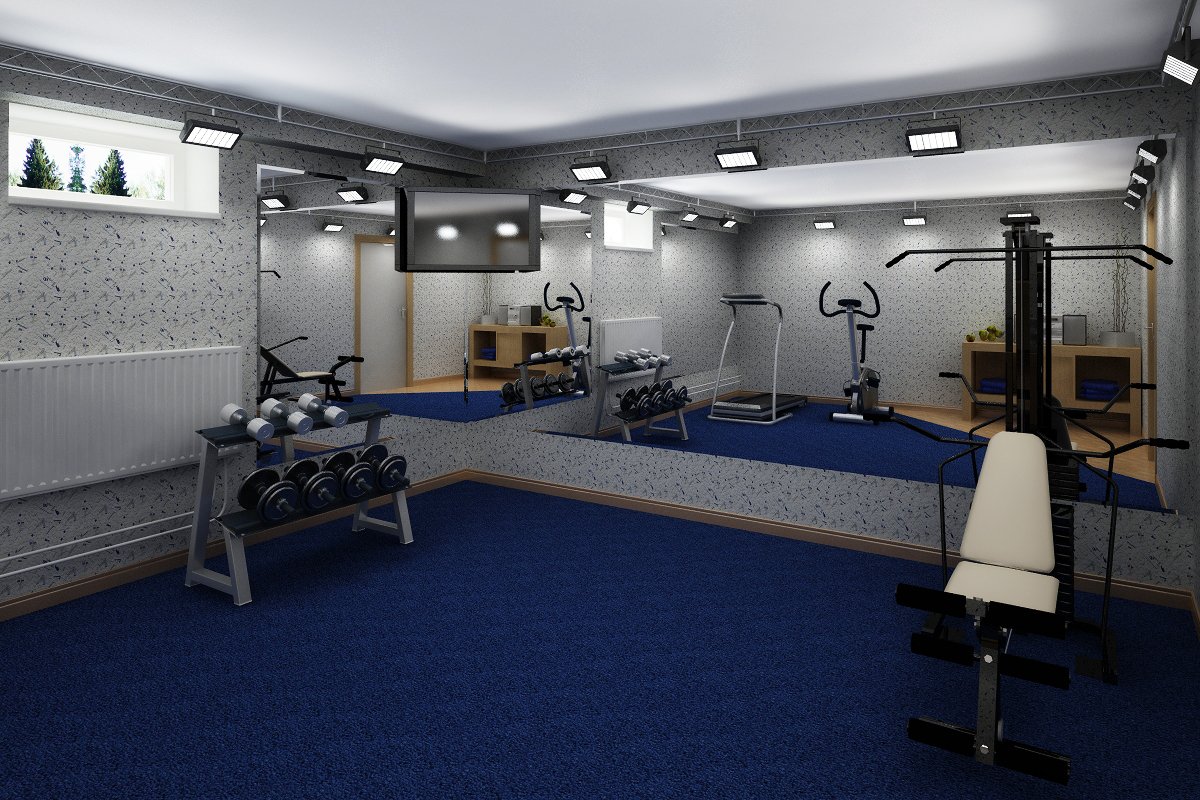 - Gym - une telle pièce est très peu exigeante pour la décoration. Dans une salle aussi spacieuse, il est facile de trouver une place pour les appareils de musculation, une barre horizontale, libérer un espace pour le yoga ou la zumba incendiaire. Cependant, il existe également une limitation: la hauteur du sous-sol doit être suffisante - au moins 2,2 m.