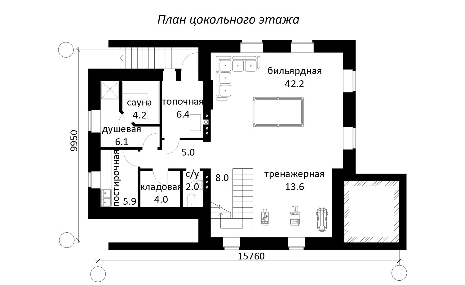- La finition du sous-sol sera plus difficile et coûteuse lors de la transformation de ce dernier en espace de vie. Il n'est pas possible d'organiser une chambre ou une crèche ici, mais un salon ou une salle de jeux spéciale est tout à fait acceptable. Une bonne idée - une salle de billard, une salle de dégustation combinée à une cave à vin. Si le sous-sol est semi-socle, un bureau y est aménagé.