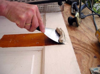 - Retirez la vieille peinture. Vous devez utiliser un solvant ou du papier de verre. Vous devez travailler très soigneusement afin de ne pas pousser ou meuler le placage.
