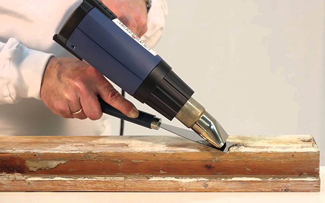 - Chauffage - l'air chaud d'un sèche-cheveux de bâtiment est dirigé vers le revêtement pour qu'il gonfle, puis nettoyé avec une spatule.