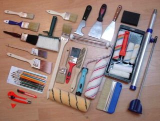 - pinceaux de différentes tailles, rouleau, pistolet pulvérisateur;